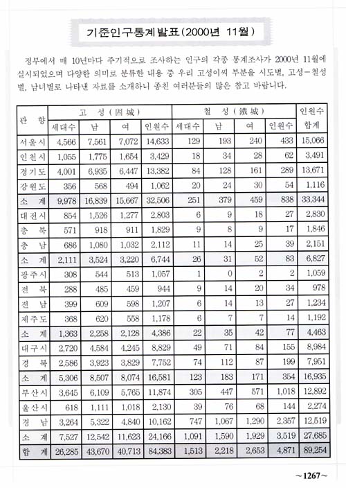 °í¼ºÀ̾¾ÀÇ Àα¸ ÇöȲÀº 2000³â 11¿ù ÇöÀç À§ Ç¥¿Í °°´Ù. (ÀÚ·á: °í¼ºÀ̾¾´ëÁ¾È¸¹ßÀü»ç, p. 1267; ¿ëÇåÁ¾Áß È¨ÆäÀÌÁö°ü¸®À§¿øÀå).